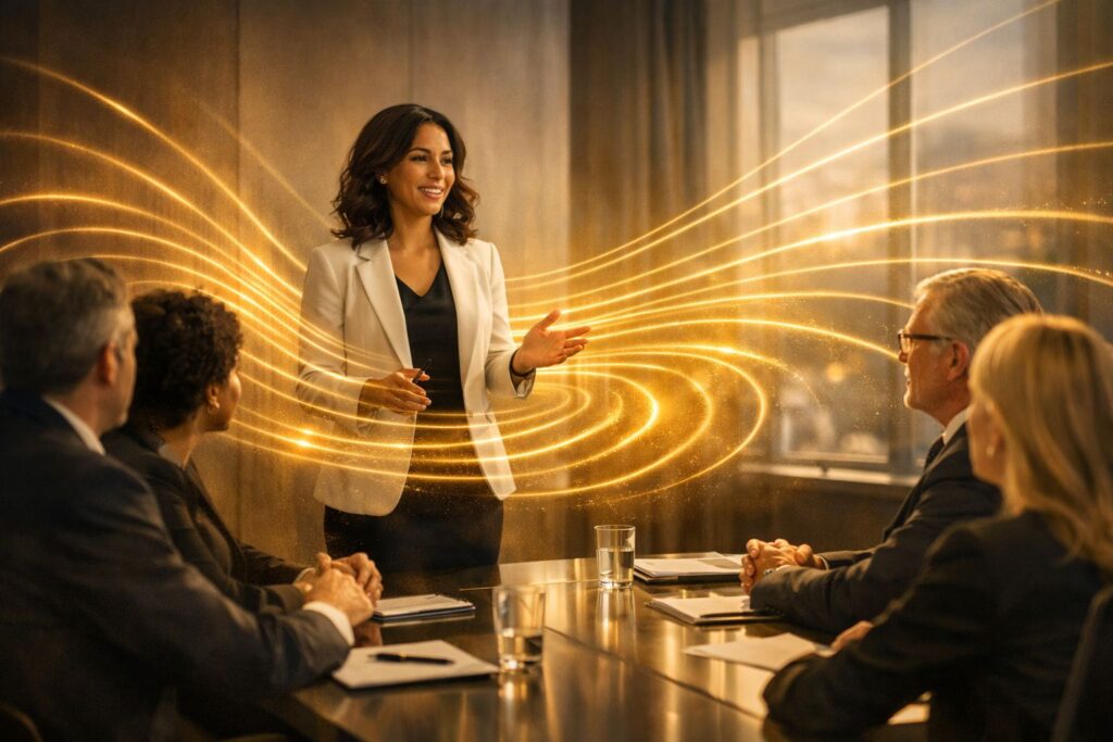 Her voice carries authority. Her posture reflects confidence. Her language radiates clarity.