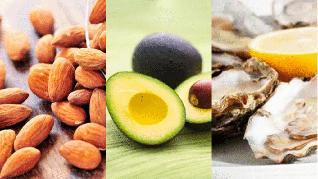 Start with healthy fats. For instance, avocados, nuts, and seeds support hormone balance. Dark chocolate can improve mood and pleasure. Oysters contain zinc, which supports sex hormones in women.